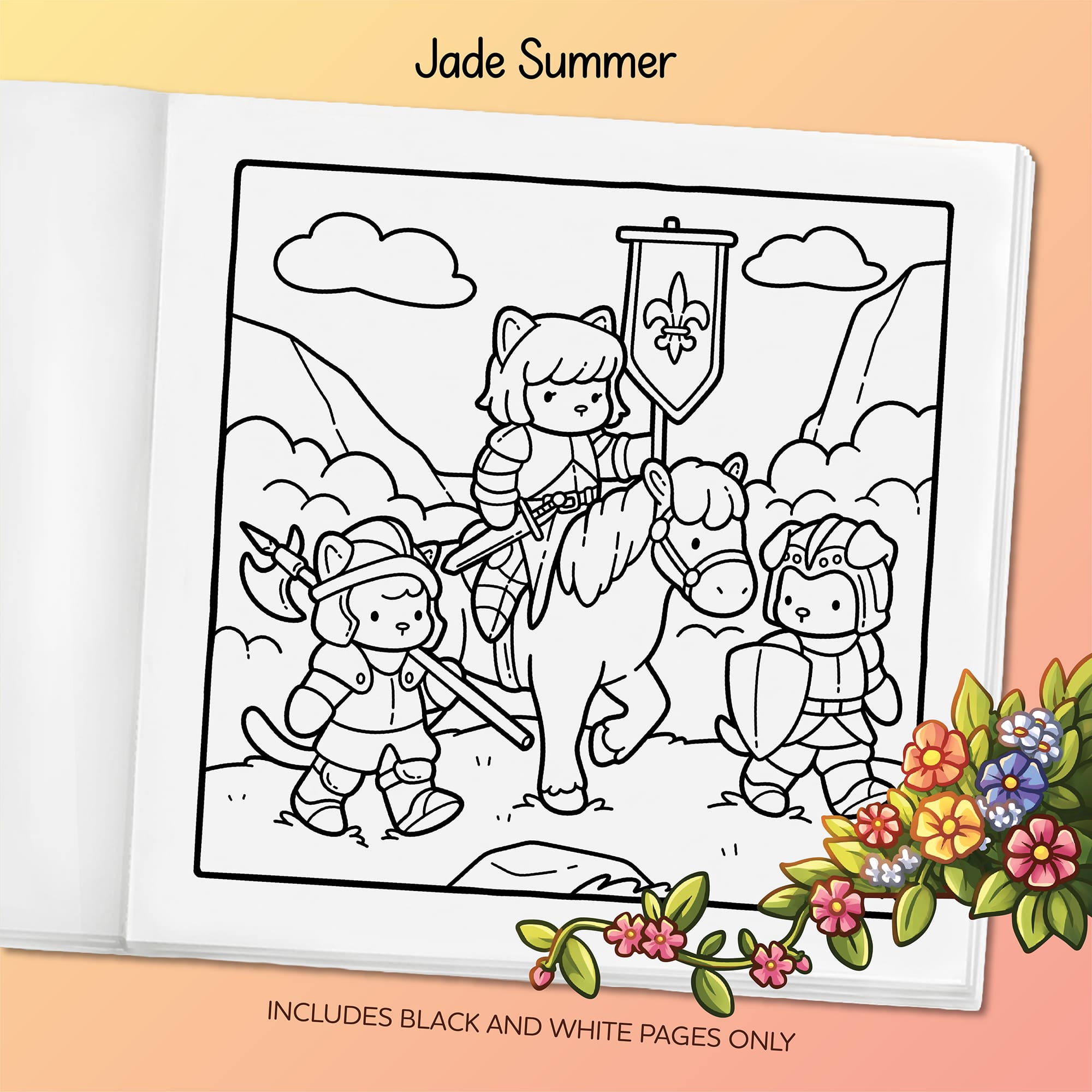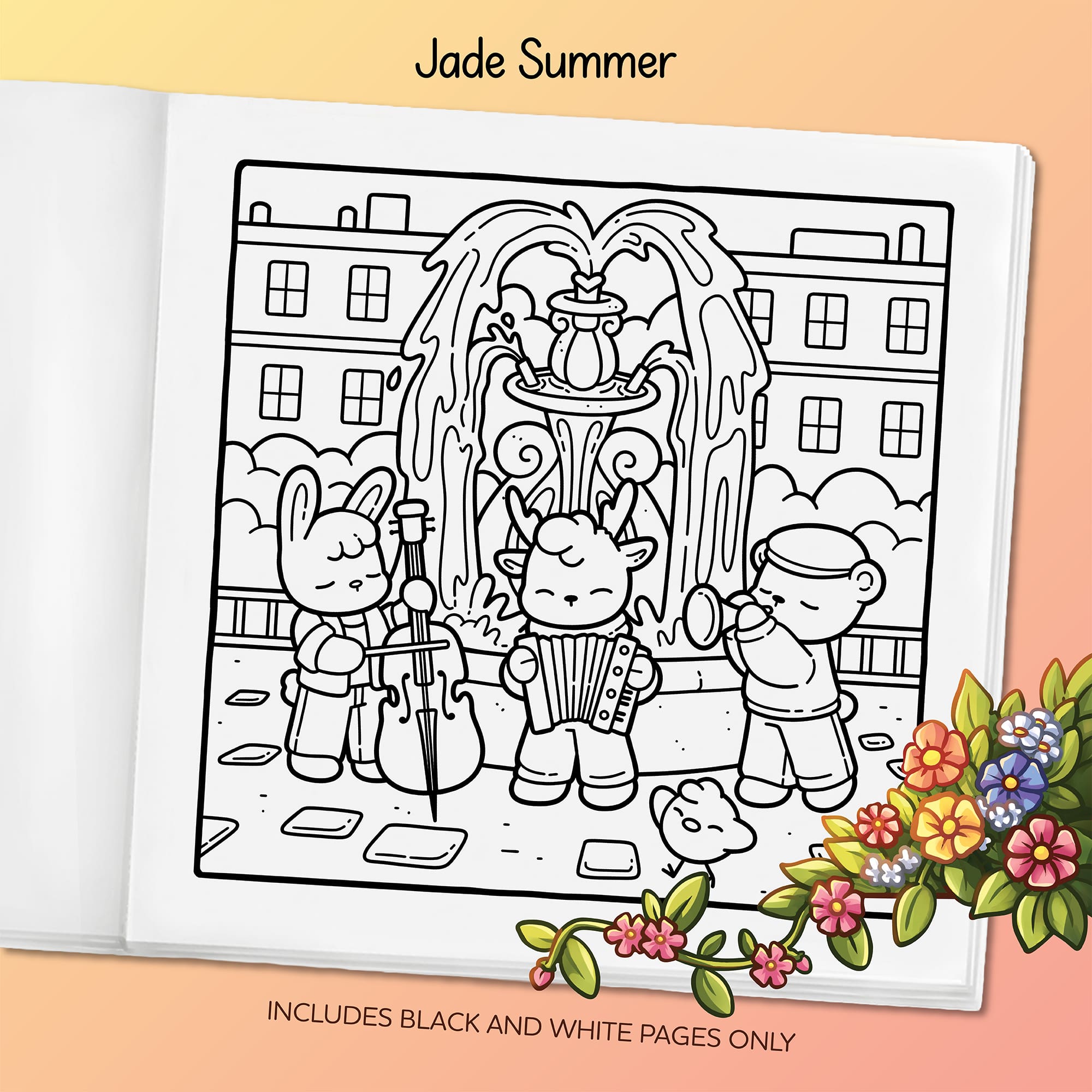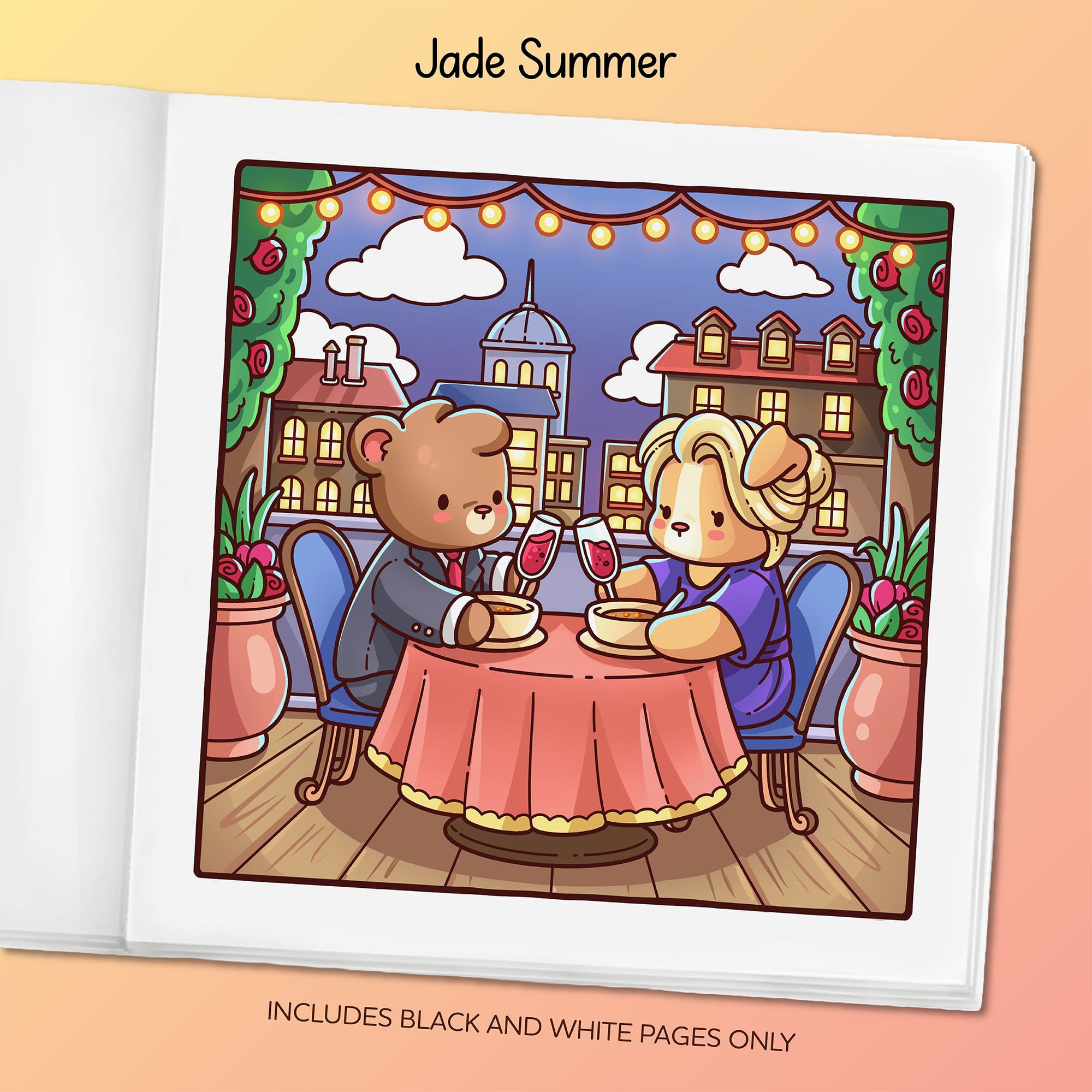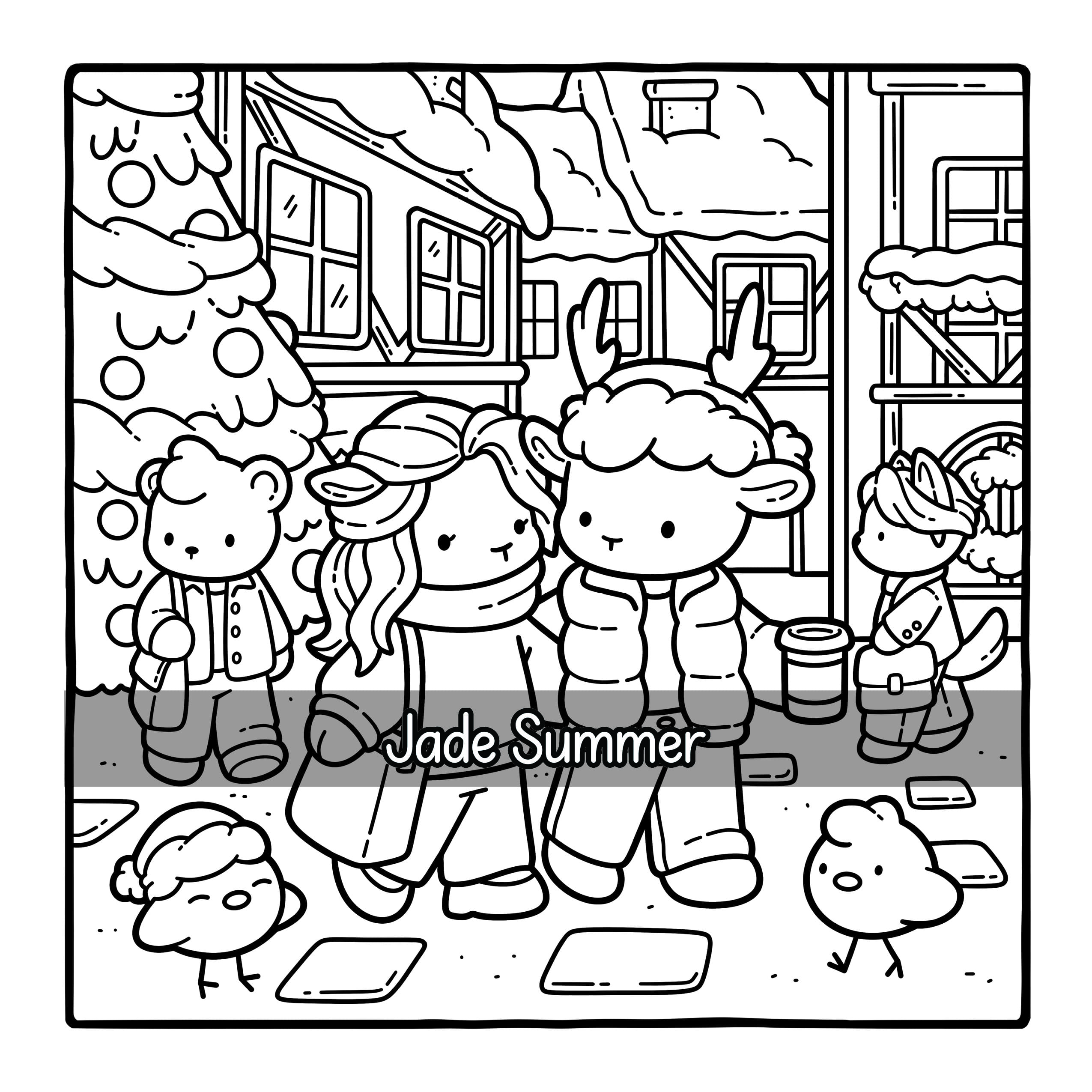 - 40 Cute Images. Warm and charming designs printed on 8.5″ x 8.5″ pages.