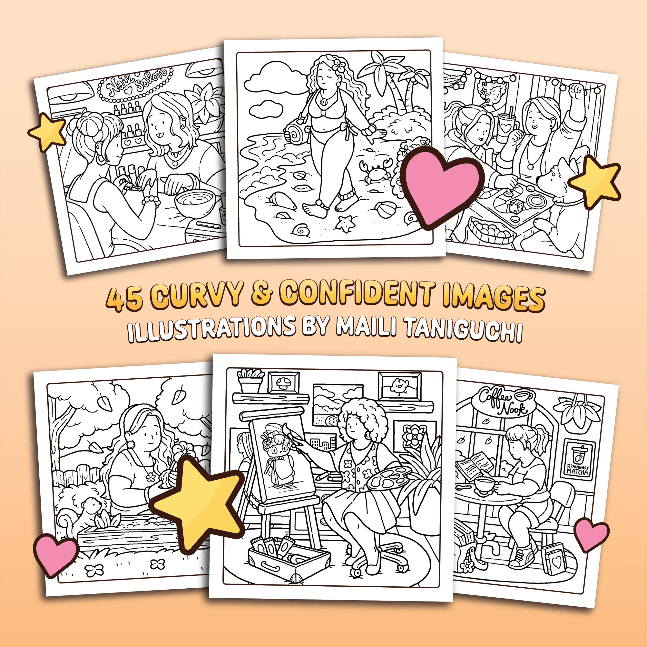 Celebrate curves, confidence, and self-love with Curvy Cuties by Jade Summer! This uplifting coloring book is filled with plus-size girls living their best life. Whether they are practicing self-care, building confidence, or simply enjoying everyday moments, each delightful scene shows that beauty comes in every shape and size.
